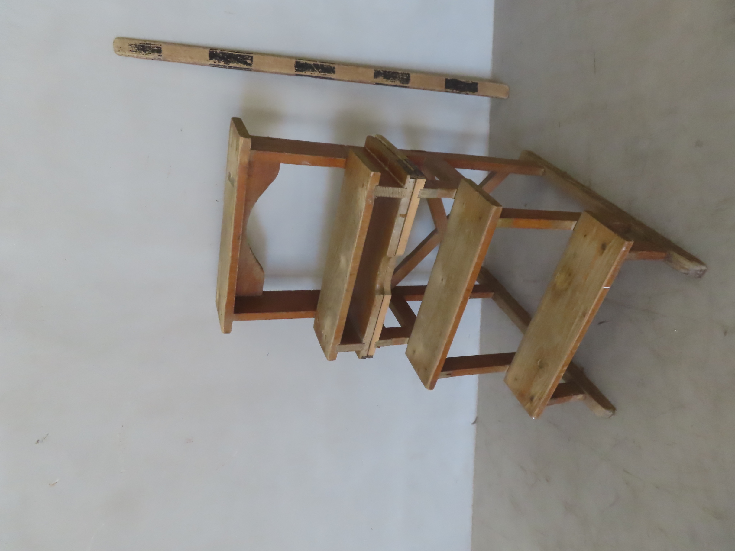 Wooden=church kneeler with several steps, the upper part with a support. Stable construction, surface with patina and signs of use, suitable as a liturgical aid, historical piece or stylish decorative element for interior.